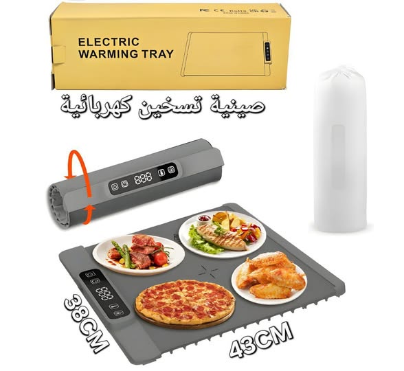 صينية تسخين طعام ذكية من السيليكون بقدرة تسخين خلال 10 ثوانٍ فقط. تحكم بـ 3 مستويات للحرارة حتى 90 درجة، قابلة للطي وآمنة تماماً. الحل المثالي للتسخين